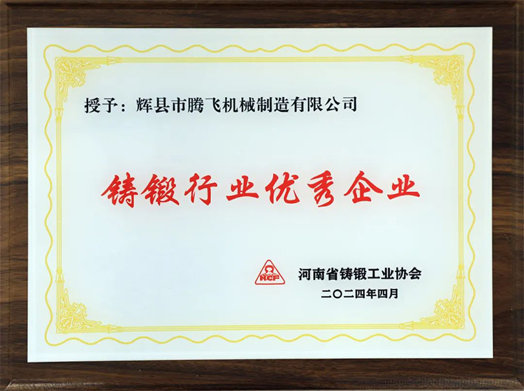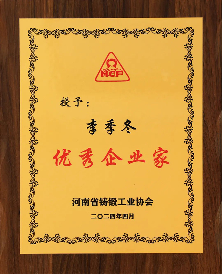 ? ? ?在2024年河南省鑄鍛工業(yè)年會上,公司被評為“河南省鑄鍛行業(yè)綠色鑄造示范企業(yè)”榮譽(yù)稱號,并被授予“鑄鍛行業(yè)優(yōu)-秀企業(yè)”。李總被授予“優(yōu)-秀企業(yè)家”稱號。